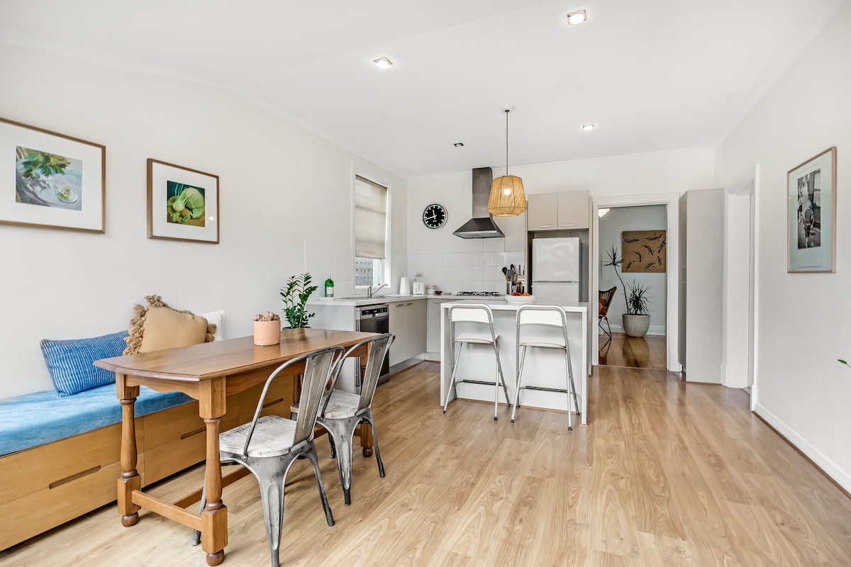 Esta acogedora unidad de un dormitorio renovada está a 1 calle de la explanada y a pocos pasos de Henley Beach. ¡Ven preparado para disfrutar de la costa! Cerca de excelentes opciones gastronómicas y comerciales, estarás bien ubicado para disfrutar del ambiente costero y del gran ambiente comunitario. Ideal para una pareja o viajeros solteros, disfrutarás de tu propio patio pequeño, lujosa cama tamaño queen, aire acondicionado, acogedora sala de estar, estacionamiento gratuito en el lugar para un coche, una cocina totalmente equipada y lavandería.