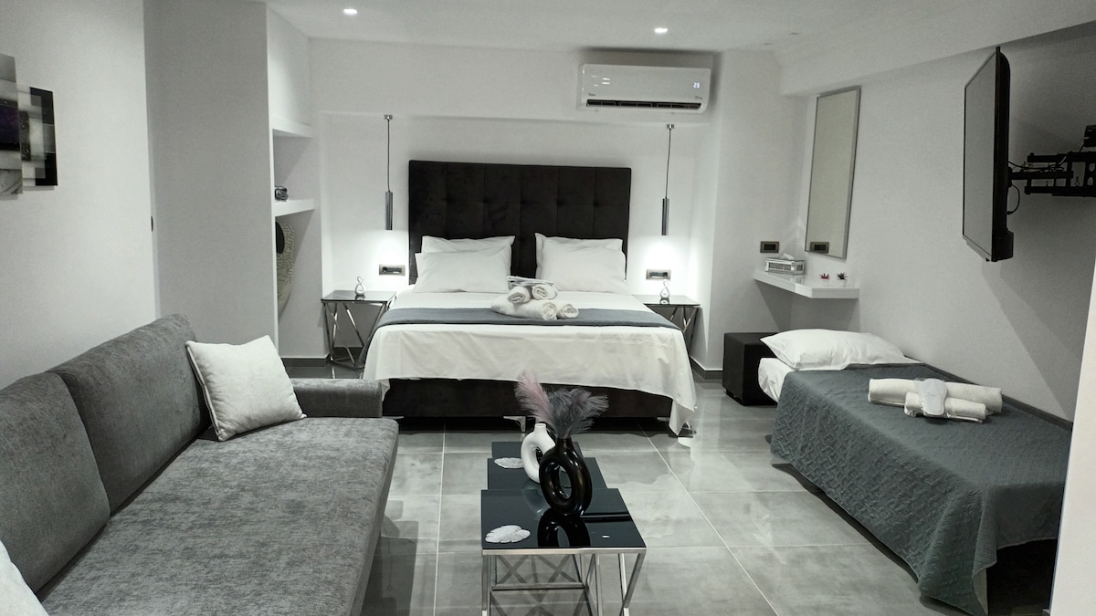 ¡Te damos la bienvenida al acogedor apartamento estudio de Eleni! Nuestro alojamiento es tranquilo, elegante y está a poca distancia en coche tanto del aeropuerto como del puerto. Puedes llegar al centro de la ciudad en 5 minutos en taxi o autobús. Estamos cerca del mar y hay supermercados, cafeterías y restaurantes con deliciosa comida tradicional justo al lado de nuestro alojamiento. ¡Es el lugar ideal para una estancia cómoda y conveniente!