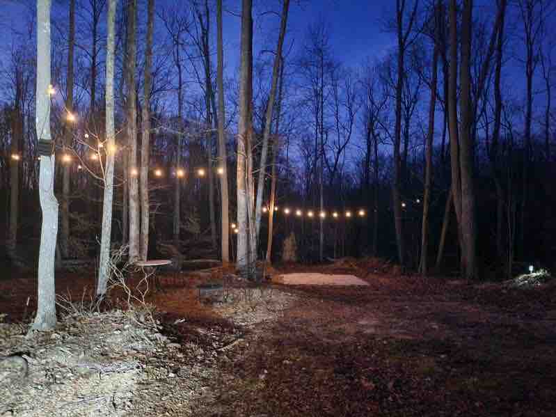 Vuelve a conectar con la naturaleza en esta escapada inolvidable. Este no es tu campamento de parque estatal medio. Este es el verdadero negocio, y solo para los campistas más aventureros. Llegarás a un lugar remoto sin electricidad ni agua corriente a excepción del arroyo y una tubería que brota directamente de la roca. #6 Timber Hill hospeda un gran tocón en el centro del camping. Este camping se encuentra en 97 acres en Peaceful Hills Retreat.
