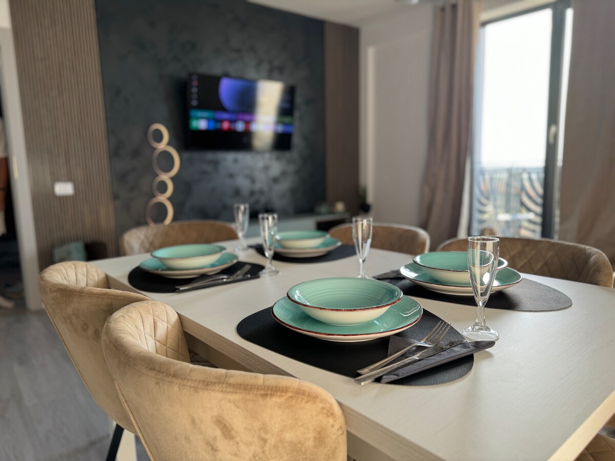 ¡Bienvenido a tu refugio ideal en plena naturaleza! Este moderno apartamento totalmente equipado ofrece un ambiente tranquilo y familiar y tiene capacidad para 4 adultos y 1 niño. Se encuentra a solo 2 minutos en coche del popular Aquapark President y del hospital de rehabilitación médica Medcenter. Ofrecemos: * Cocina totalmente equipada y baño moderno * Arreglos cómodos para dormir * Wifi gratuito, TV inteligente (Netflix, YouTube) * Aire acondicionado * Sábanas y toallas limpias * Balcón con vistas panorámicas * Estacionamiento gratis