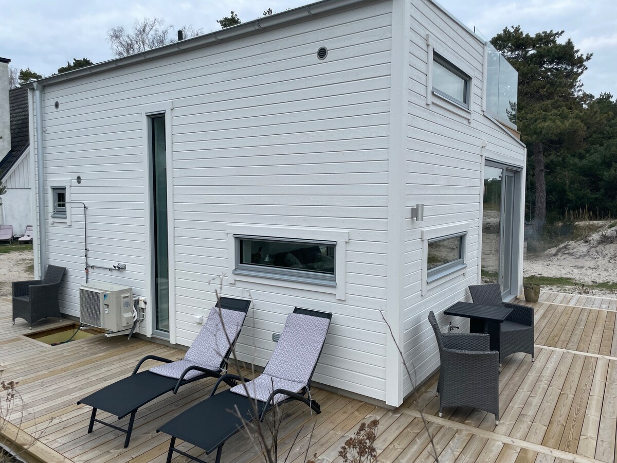 Attefallhus de nueva construcción en la ubicación perfecta, a un paso del canal Falsterbok y a 800 metros del bosque a pie de la playa con buenas conexiones de autobús. Cocina completa, baño, sala de estar con chimenea y acogedor loft para dormir. Además, el apartamento tiene su propio y bonito patio con mesa de comedor y sofá. Hay lavavajillas, wifi y aire acondicionado. Aparcamiento gratuito también está disponible. Abierto para alquileres para periodos más largos, pero también semanalmente.