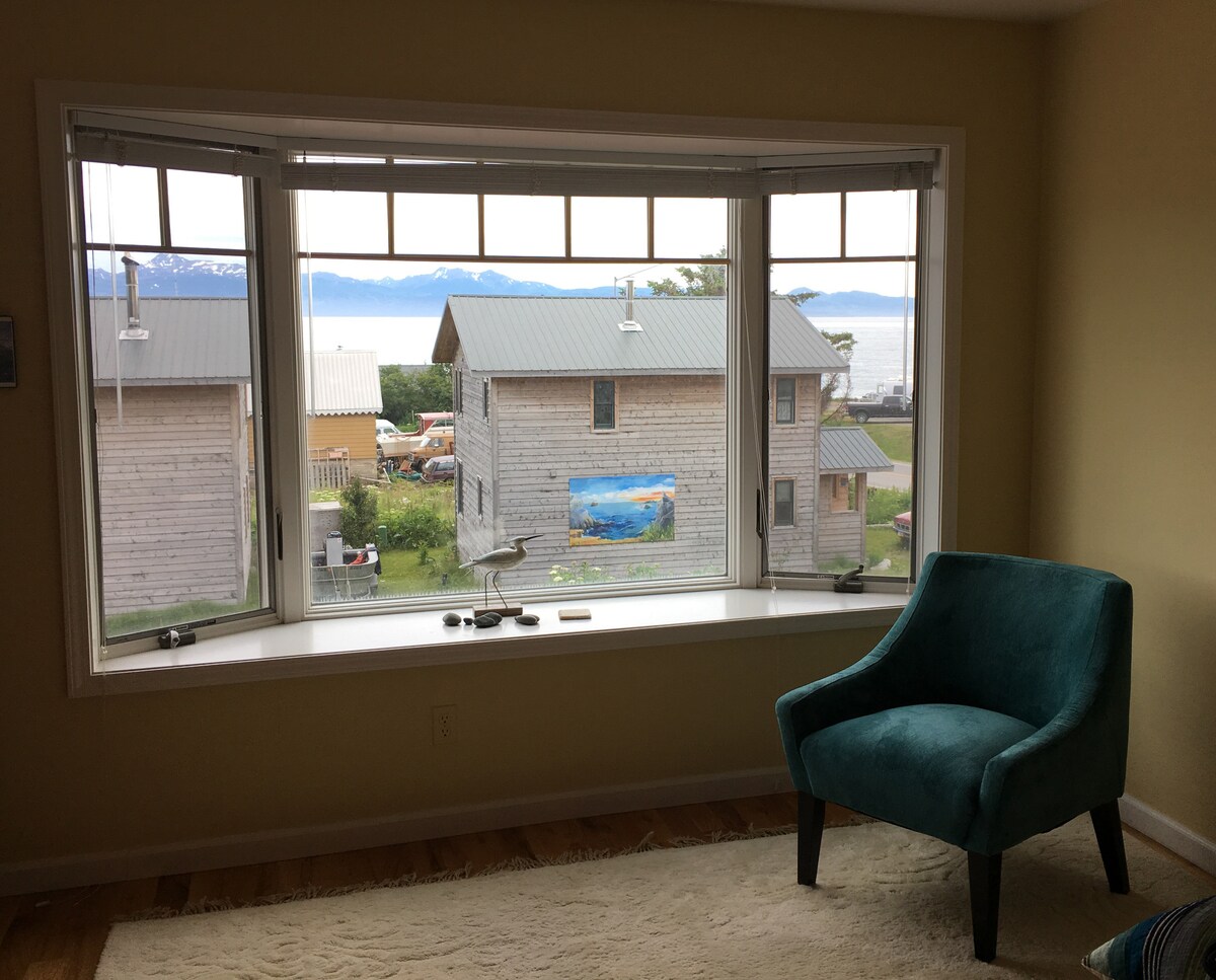 Esta sencilla y encantadora cabaña se encuentra en lo alto de un prado verde (o blanco o marrón) con vistas a la bahía de Kachemak y a dos caballos mimados. Tiene un ambiente tranquilo «fuera de la ciudad», sin embargo, Spit y el centro de Homer están a solo 8-12 minutos en coche. ¡Puede que encuentres huevos frescos de nuestras gallinas en el frigorífico si están produciendo bien! Incluye una cómoda cama tamaño queen, baño completo con lavadora y una cocina pequeña pero funcional. Las estancias largas aquí son económicas y cómodas.