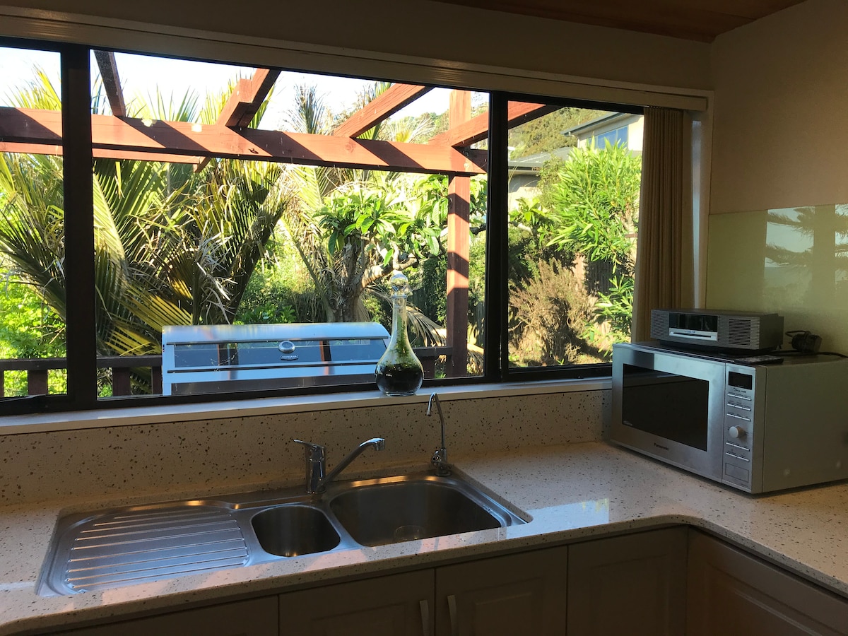 Bird 's Nest es una casa familiar privada soleada rodeada de un aislado y tranquilo jardín con muchos árboles y aves. Un lugar perfecto para relajarse y descansar con tu familia mientras exploras el Parque Nacional Abel Tasman, el Great Taste Cycle Trail o Richmond Hills. Las colinas de Richmond tienen muchos senderos para caminar y andar en bicicleta de montaña con fantásticas vistas de la bahía de Tasmania.La Isla Conejo con su maravillosa playa y espectacular paisaje también es un gran lugar para disfrutar del día y está a solo 15 minutos en coche.