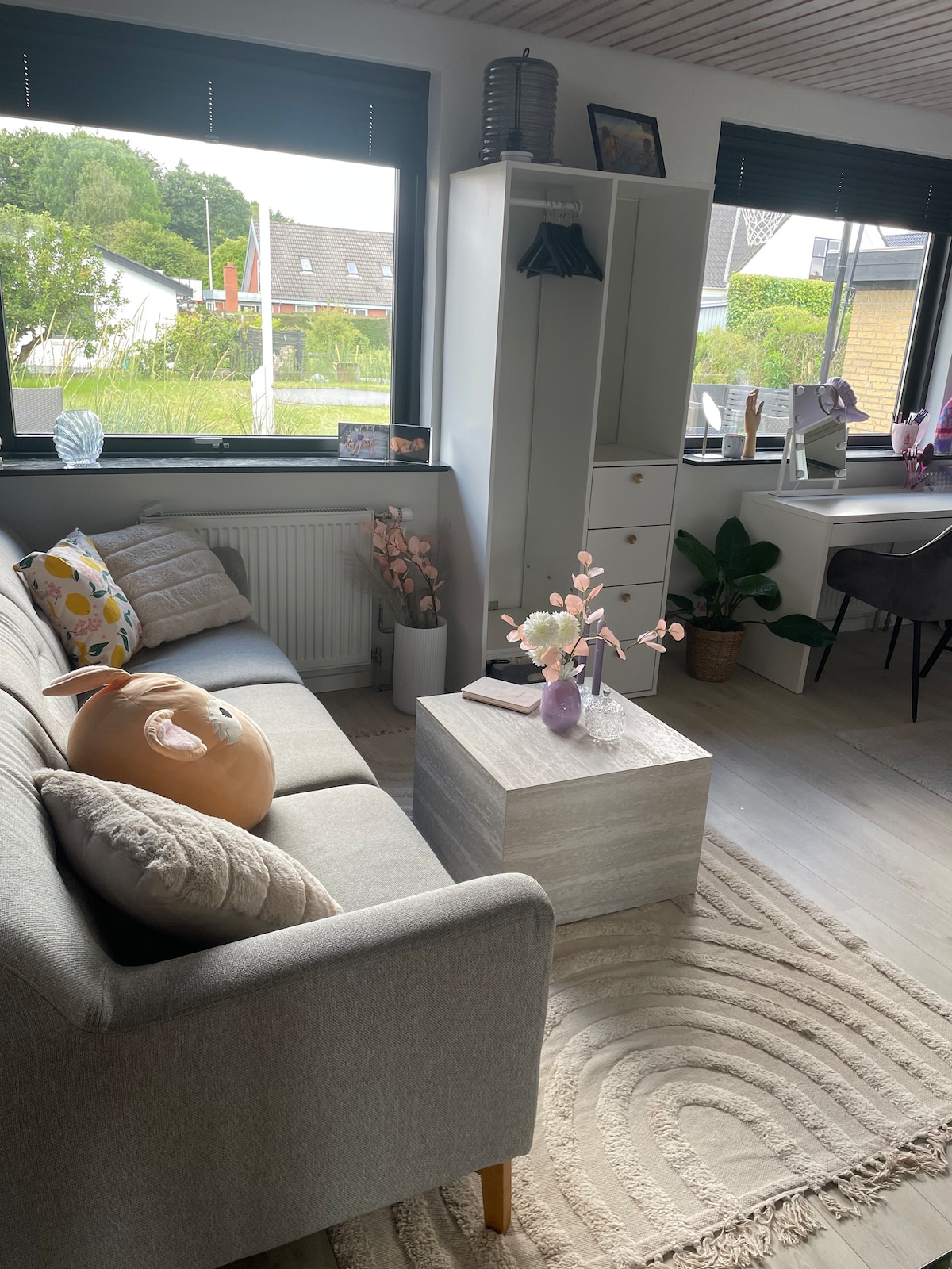 Acogedor y privado mini apartamento con jardín, cerca de la naturaleza y la ciudad cerca de Horsens, perfecto para una estancia relajante para dos. La casa tiene una entrada privada, una decoración acogedora y un gran jardín con una zona de fogata/barbacoa. Recibirás: - Dormitorio con cama doble de 140 cm. armario pequeño rincón de trabajo y silla de oficina, wifi eficiente y gratuito 202,0/159,3 - Sala de estar con sillones y mesa de centro, TV, hervidor eléctrico, freidora de aire, tostadora, nevera pequeña, armario para almacenamiento y servicio - Inodoro privado con ducha. - Calefacción por suelo radiante. - Alojamiento libre de humo