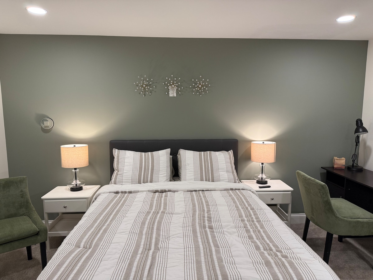 Dos días, una semana o incluso un mes o más!! Este apartamento de dos habitaciones en el sótano te sorprenderá! ¡Tiene todas las características de un hogar! Disfruta del tranquilo barrio, el encantador arroyo, el lago, los bosques y los senderos. ¡Te encantará esta pequeña casa con su propia entrada independiente! ¡Muy privada y cómoda!