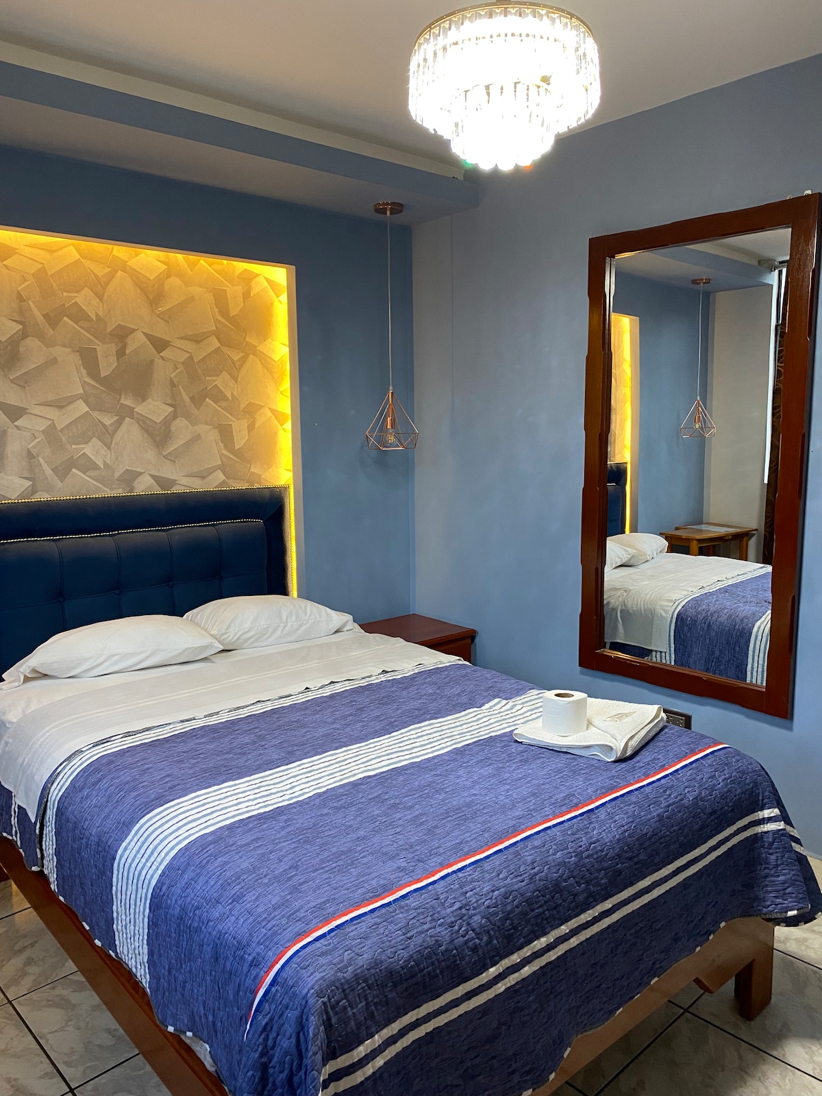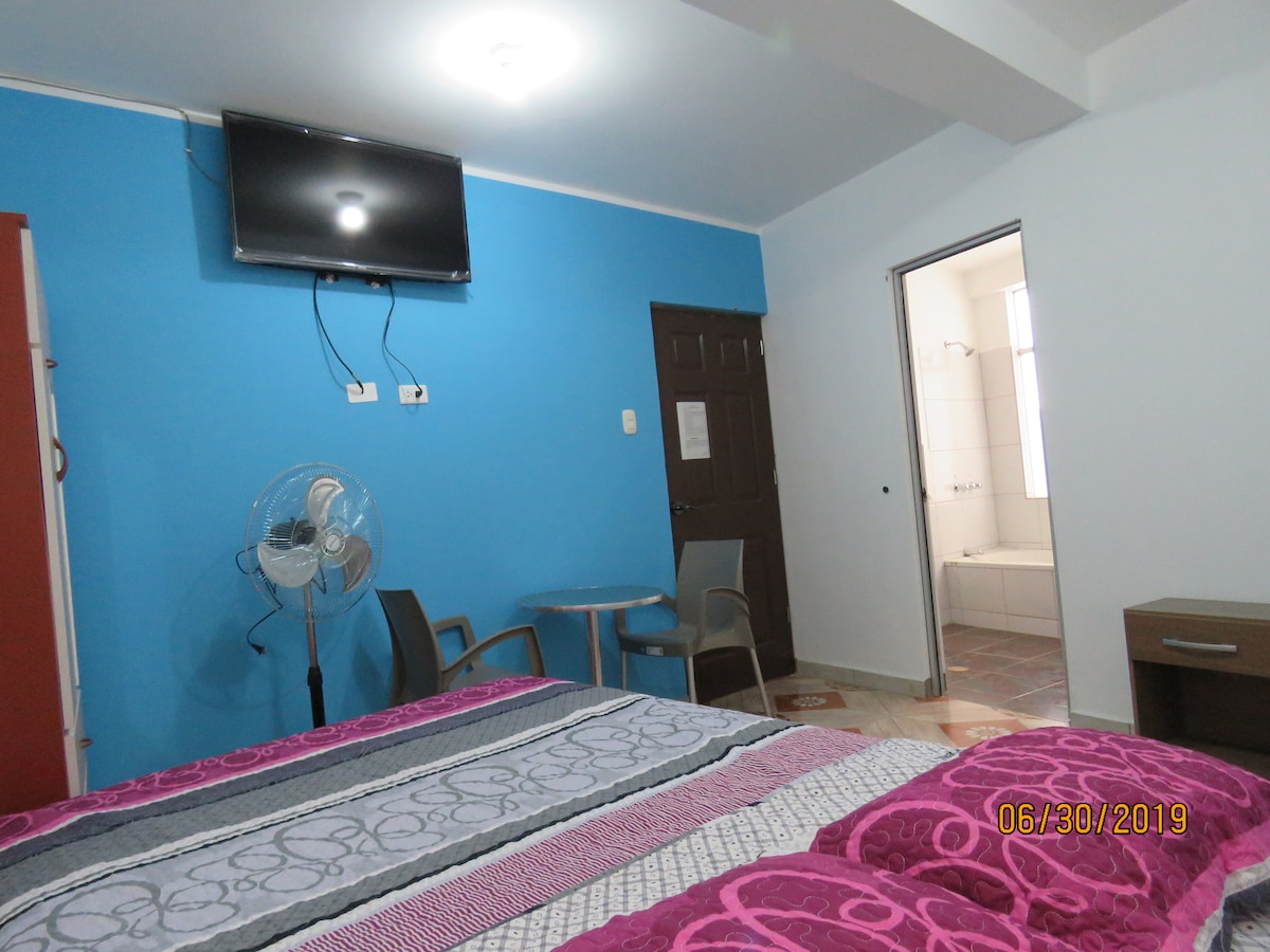 Disfruta de una habitación matrimonial cómoda y luminosa con baño privado y vista a la calle. Ubicada en el Hostal Bahía, en una zona céntrica de Huánuco, ideal para descansar o disfrutar de la ciudad. Contamos con agua caliente, Wi-Fi, cuenta Netflix y atención amable para que tu estadía sea agradable.