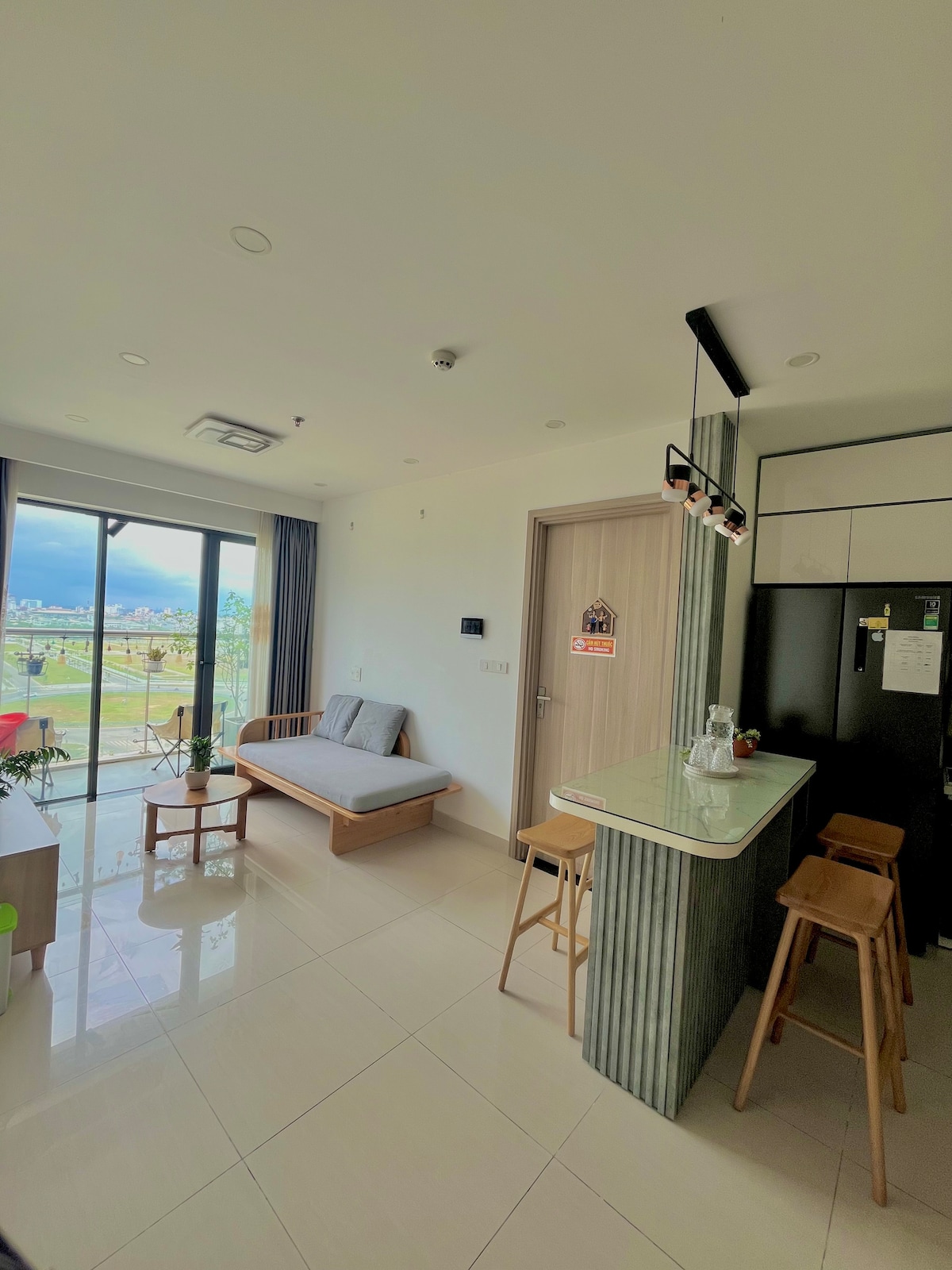 Relájate con toda la familia en este alojamiento tranquilo. El apartamento con servicios consta de 2 dormitorios, sala, 2 aseos, lavadora, nevera, cocina, utensilios de cocina y comedor, balcón con vistas a la piscina. Este es un apartamento muy adecuado para ti y tu estancia familiar. Además, todo el edificio cuenta con cámaras y seguridad 24/7, los huéspedes también tienen acceso gratuito al gimnasio y a la piscina. Te garantizo que ofrecerte la mejor experiencia a ti y a tus seres queridos.