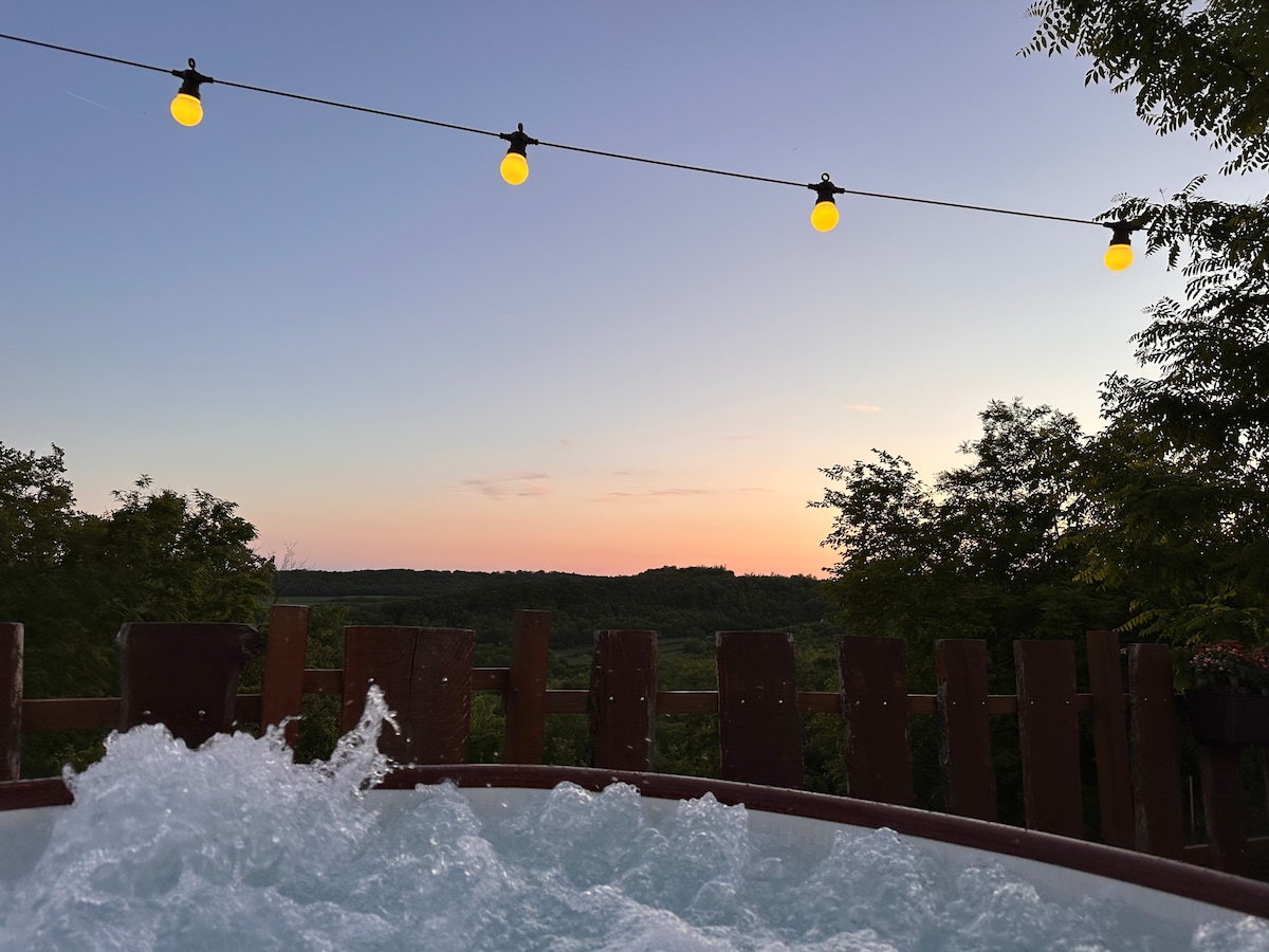 Cosy wood cabin with fireplace & Danube Bend views
