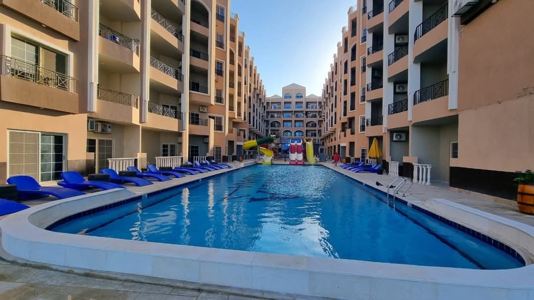 Hotel apartment inside a 5-star resort in Hurghada, offering comfort and luxury in one place. The resort features 9 swimming pools, a private beach, and an aquapark (USD 27 per person – all inclusive). Guests can access 7 restaurants, a bar, a café, and enjoy night entertainment. The apartment includes a private kitchen and clean towels. Prime location: 5 minutes from El Gouna and 15 minutes from the city center.