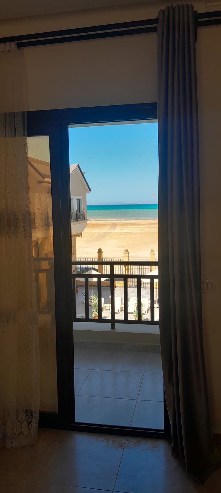 Vacaciones en Hurghada: disfruta de tu estancia en un moderno apartamento de 1 dormitorio, frente a la playa y superespacioso de 90 metros cuadrados con cocina de planta abierta y sala de estar, totalmente amueblado con todos los elementos esenciales para tu cómoda estancia en Hurghada. El gran balcón te ofrece las mejores vistas directas al mar/piscina y es el lugar ideal para contemplar un amanecer mágico. Playa privada, tumbonas, dos grandes piscinas, jardín verde, internet wifi 4G, seguridad las 24 horas, los 7 días de la semana y aparcamiento al aire libre incluidos. **El precio no incluye las facturas de agua y electricidad.