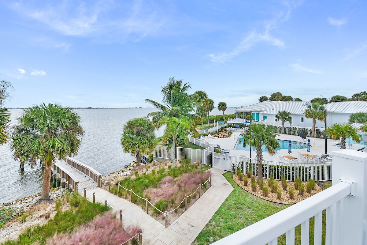 Retiro frente al agua 2/2 3 dormitorios en el Jensen Beach Causeway Bridge A pie de la playa de Indian River Lagoon o a 2 minutos en coche de la playa del océano Atlántico. Disfruta de las tranquilas vistas al agua mientras pasan los barcos, PESCA DESDE EL MUELLE, tumbonas, patio privado para cenar y un luminoso solárium con comedor. Relájate en la piscina comunitaria, juega en las canchas de tenis/pickleball, da un paseo panorámico en bicicleta o asa tu pesca. Con restaurantes, tiendas y parques, The Sunset House es una combinación perfecta de relajación frente al mar y aventura en la Costa del Tesoro.