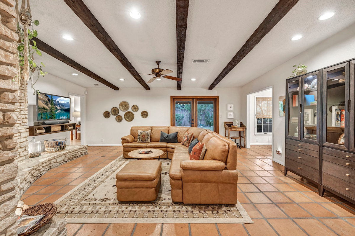 ¡El Airbnb favorito de los huéspedes de Austin! Con una comodidad moderna y un estilo único, este refugio es tu santuario perfecto para relajarte y explorar Austin. Lo más destacable: • Se admiten mascotas: patio grande y vallado. • Descansa bien: colchones y sábanas nuevos. • Cocina del chef: ¡totalmente equipada! • Vida al aire libre: patio comedor cubierto. • Ideal para trabajar: Internet de fibra de alta velocidad de 1 Gb. •Naturaleza: kilómetros de senderos seguros a >5 minutos • Ubicación privilegiada: las mejores atracciones cercanas. • Limpio y seguro: limpieza inmaculada en un barrio tranquilo.