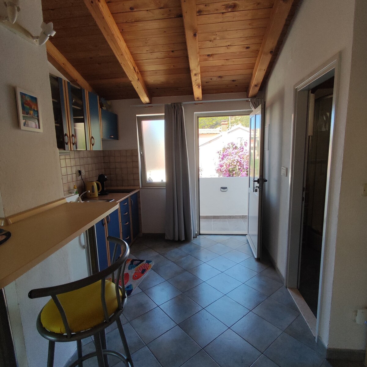 Mi casa está cerca de algunos restaurantes y comedores, de la playa junto al monasterio franciscano y de la vida nocturna. Te va a encantar mi espacio por el espacio al aire libre: balcón con una mesa donde puedes disfrutar de tus comidas o simplemente de una copa de vino. La casa también ofrece parrilla al aire libre para el uso de los huéspedes. El apartamento está situado en una zona tranquila, a menos de 15 minutos a pie del puerto y del centro de la ciudad. Consta de dormitorio con cama de matrimonio, cocina totalmente equipada con salida al balcón y baño.