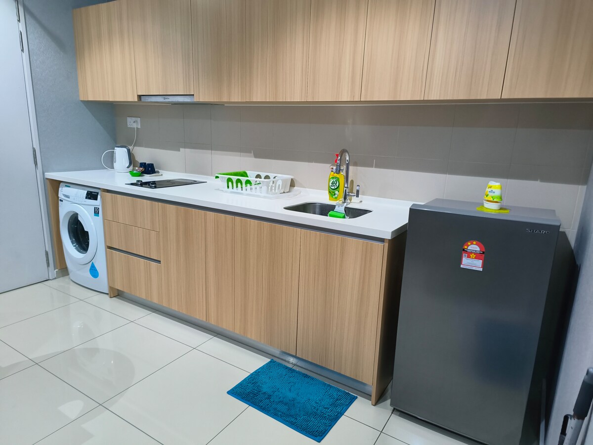 Este espacioso apartamento es perfecto para pasar unas grandes vacaciones en familia. Tiene capacidad para 8 personas, con un pase de aparcamiento gratuito, wifi y televisores inteligentes listos para Netflix. Las instalaciones incluyen una gran piscina, completa con sauna y gimnasio. Lugar muy estratégico, ubicado junto al parque temático i-City y conectado a través de un puente elevado con el centro comercial Central i-City, el centro comercial más grande de Shah Alam, con marcas globales, supermercados, cine, restaurantes y cafeterías que ofrecen una experiencia de compra emocionante.