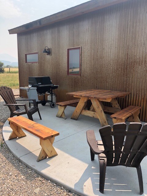Este espacio único era un granero que recientemente remodelamos en una casa de huéspedes accesible para discapacitados. Está junto a nuestra residencia principal, con aparcamiento/entrada independientes. Techos altos y hermosa luz natural. Patio lateral privado con mesa y parrilla, vistas al Big Hole y a las cordilleras Teton. El dormitorio principal tiene una cama tamaño king, TV en la pared y un gran baño conectado. El baño es privado y el acceso es a través del dormitorio principal. Hay una habitación extra en la planta superior que tiene una cama doble para dormir más.