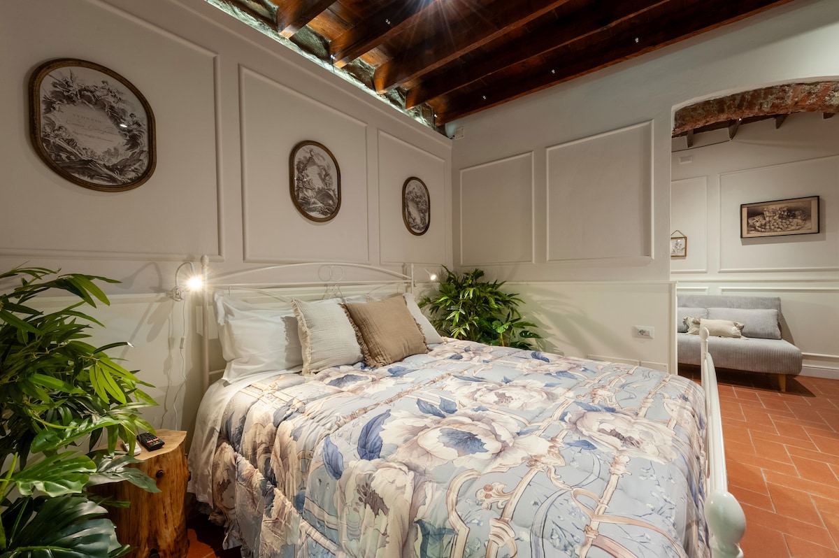 Apartamento exclusivo y refinado en la segunda planta de un edificio histórico del siglo XVI, en el corazón de Florencia. Con vigas a la vista, suelos de parqué y muebles florentinos hechos a mano, combina el encanto histórico con el diseño moderno, creando un ambiente cálido y acogedor. Ideal para parejas, amigos o familias, ofrece una ubicación céntrica a poca distancia a pie de todas las atracciones principales, desde museos hasta plazas históricas.