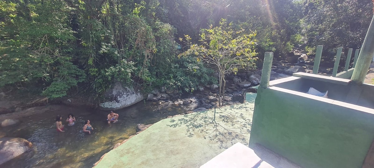 PRECIOSA CASA DE PIEDRA para 9 personas, en Mangaratiba, en una comunidad cerrada (cond. Guity). Cascada privada con barbacoa cubierta al lado y un espacio para una fogata. Vista completa al mar y a 50 metros de una playa con aguas tranquilas, exclusiva del condominio, ideal para niños y personas mayores y para deportes como natación, surf de remo y kayak*. La casa tiene 3 dormitorios con aire acondicionado, 3 baños, un gran salón y un balcón. Internet súper rápido: 500MG *alquiler disponible