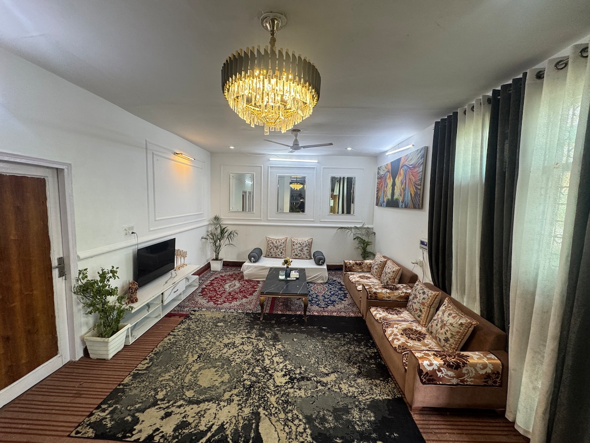 Un lugar de lujo con una gran piscina cubierta (10 pies por 24 pies de largo y 4 pies de profundidad) y salas de estar elegantemente decoradas. Un gran dormitorio principal con jacuzzi privado en el baño privado. Convenientemente ubicado en Posh South Delhi Neighborhood. Cerca de los principales lugares turísticos como el Templo Lotus, Qutub Minar y Hauz Khas. Centros comerciales como, Select City Mall, GK, Shahpur jat. A 5 min de la estación de metro insta - micassohomes A 30-40 minutos del Aeropuerto en Uber, también accesible en metro.