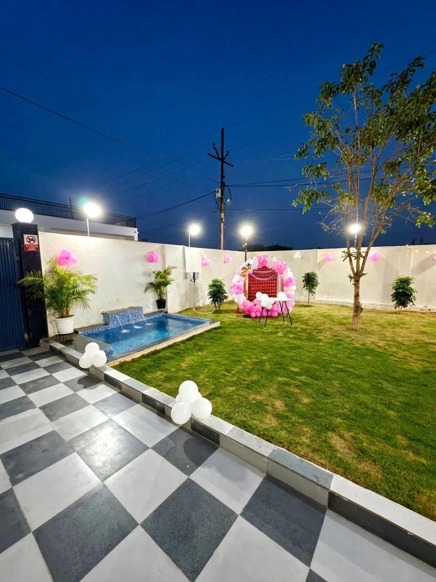 Organiza celebraciones inolvidables en Arth Villa Elegante villa privada en Noida con total privacidad Ideal para parejas, familias y grupos pequeños Acogedores espacios interiores con una agradable zona exterior Ambiente tranquilo y apacible lejos de las multitudes Hoguera disponible bajo petición para las noches de invierno. El servicio de hoguera se cobra adicionalmente con confirmación previa. Perfecto para estancias relajadas y celebraciones íntimas Se permite música a un volumen razonable según las directrices locales