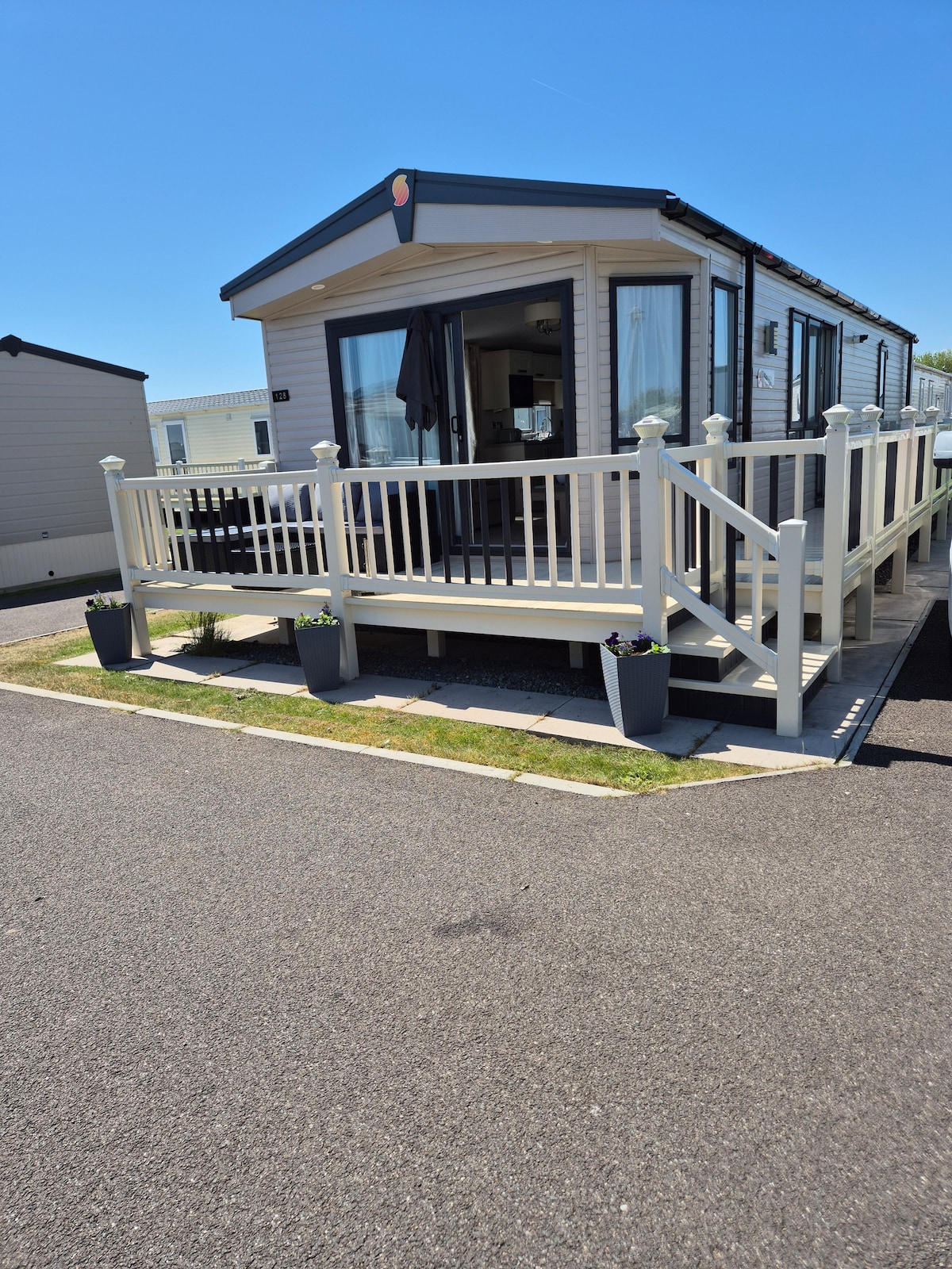 Esta caravana de 35 x 12 pies bellamente presentada ofrece amplios espacios de estar sin comprometer el almacenamiento. Tenemos doble acristalamiento, calefacción central, cubierta y los detalles de inicio de sesión wifi están en el router. Recientemente ha sido amueblada y la ropa de cama está incluida en tu estancia, pero trae tus toallas. Tenemos acceso directo a la playa y a la cafetería. Fantasy Island está a 5 minutos a pie y el pub Sealand está al otro lado de la carretera.