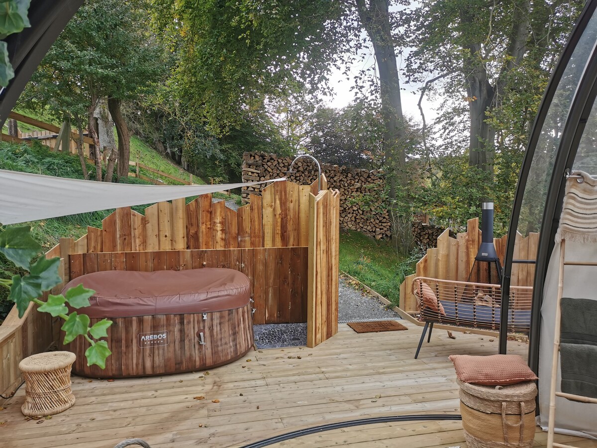Lodge con bañera nórdica privada en Normandía