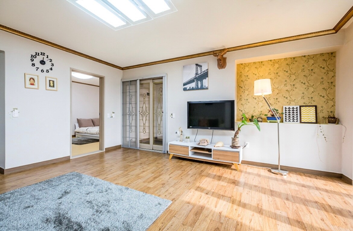 Es un anexo de una casa unifamiliar ubicada en una zona residencial unifamiliar tranquila. En el gran césped del patio hay 2 perritos pequeños y carpas en el estanque. Puede hacer una barbacoa en el césped y divertirse en el karaoke subterráneo (está equipado con aire acondicionado y calefacción). El paisaje de la mañana es muy bonito. Disfruta de la naturaleza en una mesa de jardín tranquila y pacífica con una taza de café. . . Varias flores siguen floreciendo y muriendo. El amplio campo detrás del edificio también es digno de ver, ya que el arroz cambia de verde a amarillo según la temporada ^ ^ * Check-in - 4 p. m. (el almacenamiento de equipaje está disponible desde la mañana) * Check-out - 12:00 * Barbacoa con fuego de carbón - 20 000 wones (incluso si llueve, es posible si el viento no es fuerte, y en invierno se enciende un calentador y una cortina cortavientos). * Karaoke subterráneo - Reglas de uso -Tarifa: 10,000 wones sin límite (nueva canción actualizada todos los días)/área para fumadores/bebidas alcohólicas, bebidas y alimentos no permitidos. * Ofrecemos un dispensador de agua, aire acondicionado, TV, cocina eléctrica, hervidor eléctrico, cafetera de granos, plancha, microondas, lavadora, tostadora, nevera, arrocera eléctrica, champú, acondicionador, gel de baño, toallas.