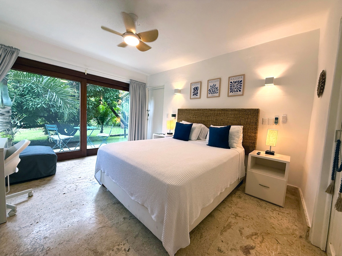 A solo 1 minuto caminando de la playa privada (visible desde la puerta del apartamento), ubicado en área más exclusiva de Bayahibe, Dominicus. Dentro del exclusivo resort Cadaqués: 3 piscinas, muelle privado, parque acuático, restaurante, bar-café, jardines tropicales, Cama king cómoda y sábanas de 300 hilos, A/C de 24,000 BTU, silla columpio (hasta 350 lb), cocina equipada, WiFi rápido y Smart TV, libros, juegos de mesa. Todo listo para que vivas una estadía inolvidable y cómoda en el paraíso!