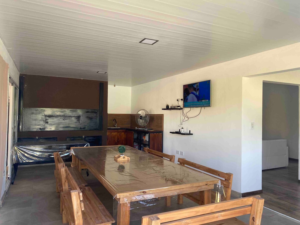 Relajate en este alojamiento único y tranquilo. Ideal para contactar con la naturaleza. Alejado de los ruidos de la ciudad pero con cercanía a la misma. Solo disfrute y relax. Con las comodidades y el confort necesarios para una estadía inolvidable. Podés disfrutar del verde característico de nuestra zona con un parque cuidado en todos sus detalles. Piscina habilitada de octubre a marzo inclusive. Ambientes muy luminosos q conectan visualmente con el verde exterior. Piscina de material 8 m x 3,5