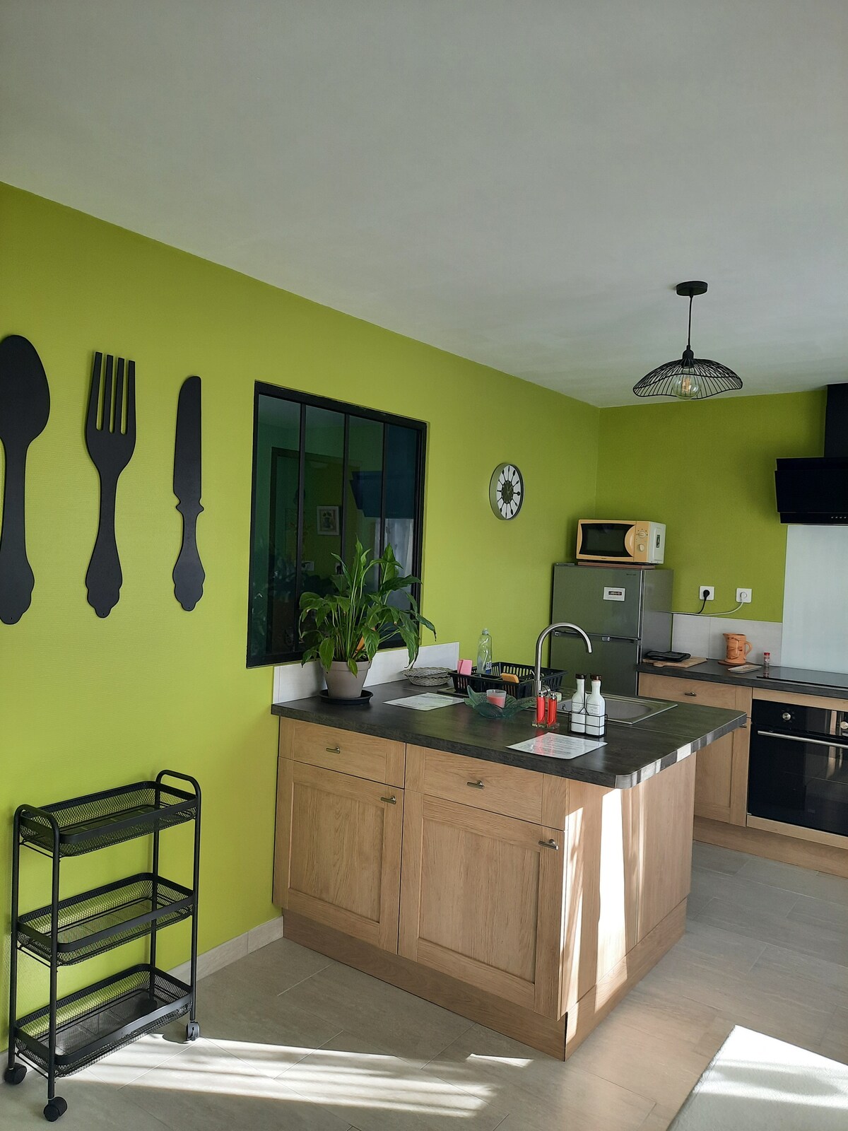 Alojamiento «l'Atelier» Centro de Francia, granja berrichonne, granero renovado en casa de huéspedes, cerca del pueblo Alojamiento nuevo de estilo industrial: cama doble + cama individual Acceso independiente y autónomo Aparcamiento frente al alojamiento (patio privado) Cerca de la RD 2144 y cerca de la salida A71 (Saint-Amand Montrond, Orval o Bourges) Sistema de climatización Se aceptan mascotas bajo petición LO MÁS: café, té, etc. a disposición y, bajo petición, pan fresco y bollería (suplemento de 3 €/persona) Descuentos: 3 noches y +