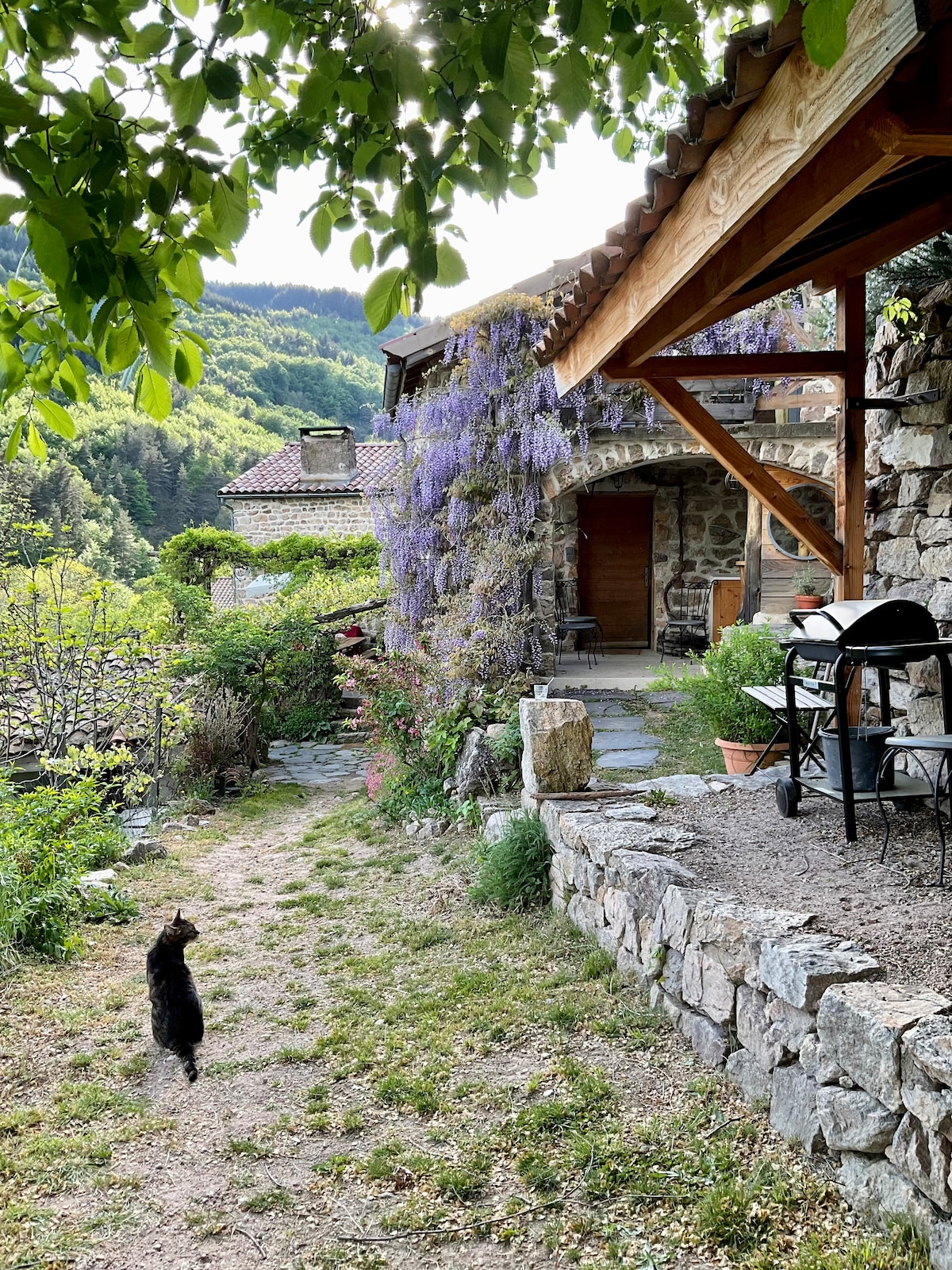 La escapada perfecta en el corazón del Ardeche con impresionantes vistas al valle y a pocos pasos de los populares lugares de baño del pueblo. Situado justo al lado de la gran casa de campo, es ideal para los amantes de la naturaleza a los que les gustan las comodidades de la vida moderna. Tiene su propia entrada, jardín y terraza para comer al aire libre, tomar el sol y contemplar las estrellas. Hay pequeños detalles como un lavavajillas, un tocadiscos de vinilos y equipamiento para los amantes del café. Tu propia plaza de aparcamiento está a 3 minutos a pie.