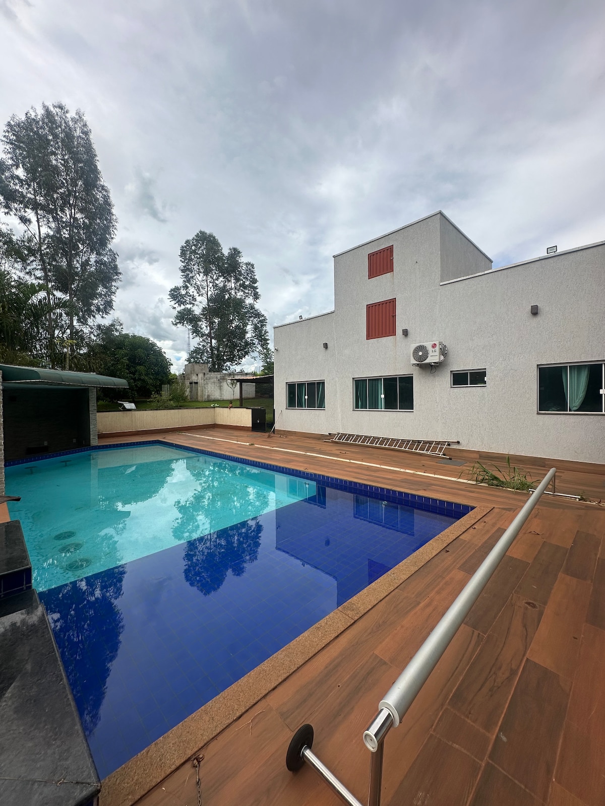 Relájate con toda la familia en este alojamiento cómodo, tranquilo y seguro. Celebra momentos especiales, recibe a tus amigos y disfruta del espacio pensado y planeado para tu familia y amigos. La casa se encuentra a 20 minutos del aeropuerto y del centro de Goiânia, con fácil acceso. La casa cuenta con: * 2 suites independientes, con camas y baños, y aire acondicionado * Baño exterior para personas con discapacidad * Piscina climatizada con hidromasaje y cascada *Horno y barbacoa de leña *Cocina montada, con nevera y fogones