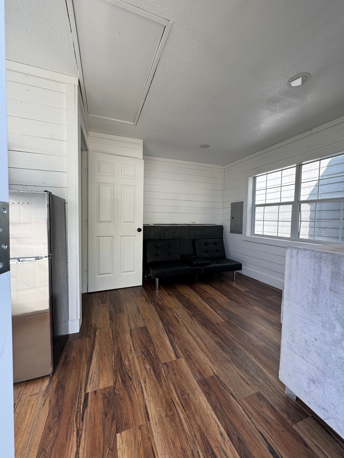Bienvenido a esta pequeña casa tranquila escondida justo detrás de la casa principal, perfecta para viajeros solos, parejas o una pequeña familia. Disfruta de un espacio privado con un cómodo futón, una pequeña cocina y un baño completo con ducha a ras de suelo. ¡Incluso hay un loft arriba (al que se accede por una escalera desplegable de estilo ático) donde puedes almacenar artículos! Tranquilo, limpio y cerca de todo: una mezcla perfecta de acogedor y práctico. Ver la propiedad en YouTube: Cozy Retreat Tiny Home + Kitchenette