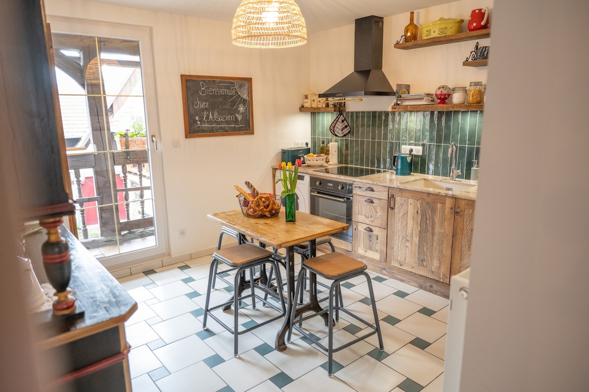 Enjoy a romantic escape in our charming 4-star loft in the heart of Barr, nestled in the courtyard of an 18th-century Alsatian half-timbered house. This spacious and fully equipped haven offers an open-plan kitchen, a cozy living area, a queen-size bed, walk-in shower, separate toilet, dressing room, air conditioning and Smart TV. A tandem is available for two, as well as a charging station for e-bikes and a private garage. A unique, refined, and welcoming place for a truly special stay.