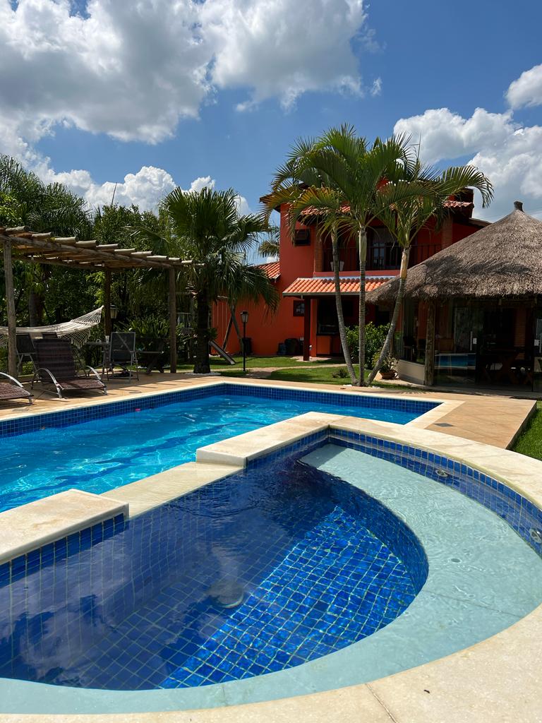 PISCINA con aire acondicionado SAUNA JACUZZI 7 plazas (agua caliente GARANTIZADA) Cama elástica Piscina profesional Pebolim Campo de fútbol Apartamento con seguridad las 24 horas AIRE ACONDICIONADO EN 3 dormitorios WIFI 100 MEGA 4 dormitorios, 2 suites + 2 baños completos + 1 medio baño Casa de estilo rústico Chimenea🔥 Sofá de cuero Dormitorio con toallas y ropa de cama Pomar e horta Lago ornamental Barbacoa Horno de pizza Wet Pool Bar Vista privilegiada TV por cable con películas Cocina completa • Cafetera ACEITA PETS NO acepta fiestas