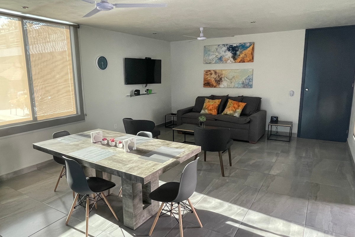 Es un espacio donde puedes estar disfrutando de paz y armonia, ya sea en soledad o en familia, esta a tan solo 5 minutos del aeropuerto de guadalajara, muy cerca de la ciudad, a un costado del rancho los tres potrillos, en este lugar te sentiras en casa, esta muy amplio y privado, cuenta con espacio para reuniones es muy comodo por dentro y por fuera. Un espacio perfecto para descansar o trabajar desde casa en la naturaleza.
