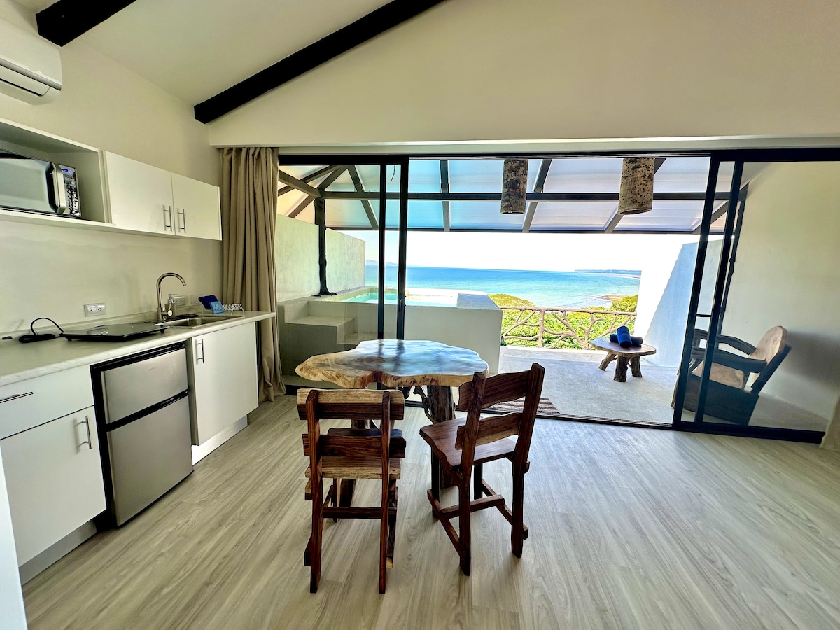 Disfruta de una estancia inolvidable en esta suite con piscina privada y una vista espectacular al mar. Relájate en el confort de una habitación amplia y acogedora, donde solo importa el descanso y la tranquilidad. Déjate envolver por la magia de la naturaleza, el silencio y la armonía. Esta suite es el lugar perfecto para vivir una experiencia relajante y encantadora con tu pareja. no querrás irte de este lugar tan único y encantador.