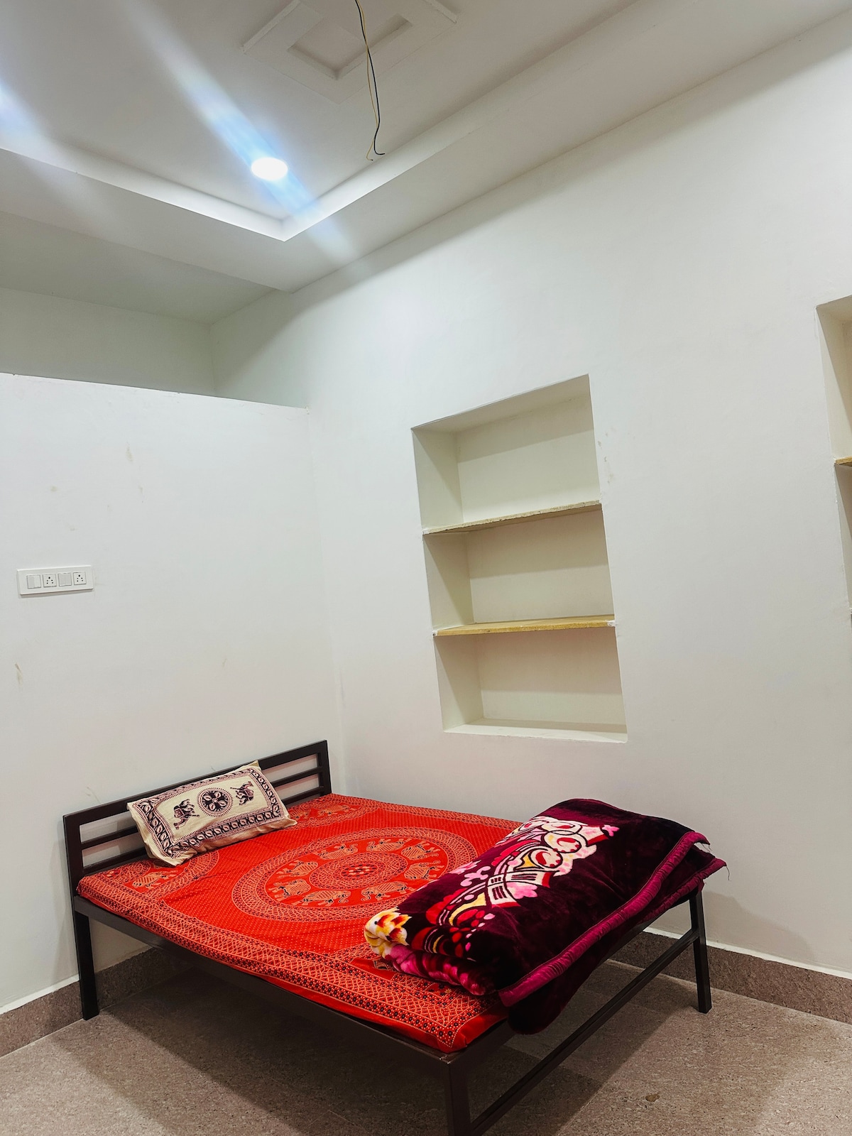 También hay comida casera disponible bajo petición 🍛, ¡para que puedas disfrutar de auténticos sabores locales durante tu estancia! 🌅 Bienvenido a nuestra hermosa casa tradicional de 2BHK en el corazón de Jaisalmer, a solo 10 minutos a pie de Patwa Haveli 🕌 y a 1 km del famoso lago Gadisar 🌅. Entra en un espacio que combina la tradición de Rajasthani con el confort moderno. Disfruta de la amplia sala de estar con un televisor inteligente de 80 pulgadas 📺, donde podrás relajarte y ver tus programas favoritos en Netflix 🍿 después de una larga jornada de exploración.