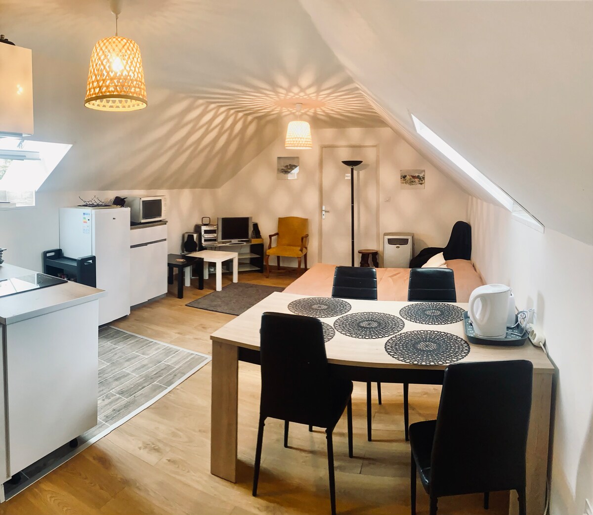 Valoración media de 4,96 sobre 5, 106 evaluacionesÁtico atípico equipado con acceso a la piscina.