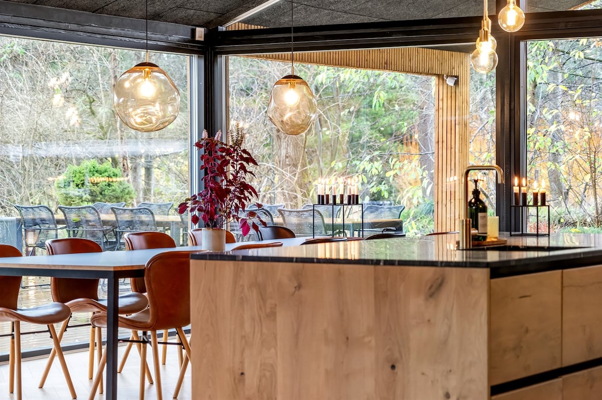 Unique and well-equipped 90 m2 year-round residence + electric charger for electric car. Incl. electricity consumption for water, underfloor heating in the bathroom + wood-burning stove and cleaning. Furnishing: Living room, kitchen, 3 bedrooms, 6 beds (3 double beds), sloping ceiling, 55' Smart-TV, 3 open terraces on hilly natural grounds with sea view and 350 meters to a beautifull bathing-friendly beach with fine corned white sand. The area offers MTB routes, paths and varied wildlife.
