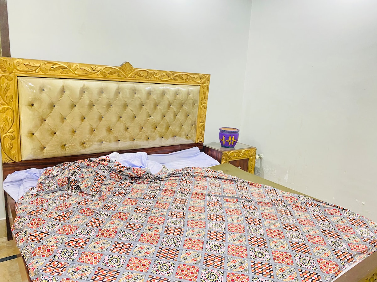 Comfortable private 1-bedroom home with attached washroom, cozy sitting sofas, and dining area. Located at Qadir Avenue near Everest Law College Bypass, beside Saima Downtown and close to Kababjees Restaurant. Includes parking, peaceful surroundings, and easy access to main roads, restaurants, and daily needs—ideal for couples, families, or business travelers.