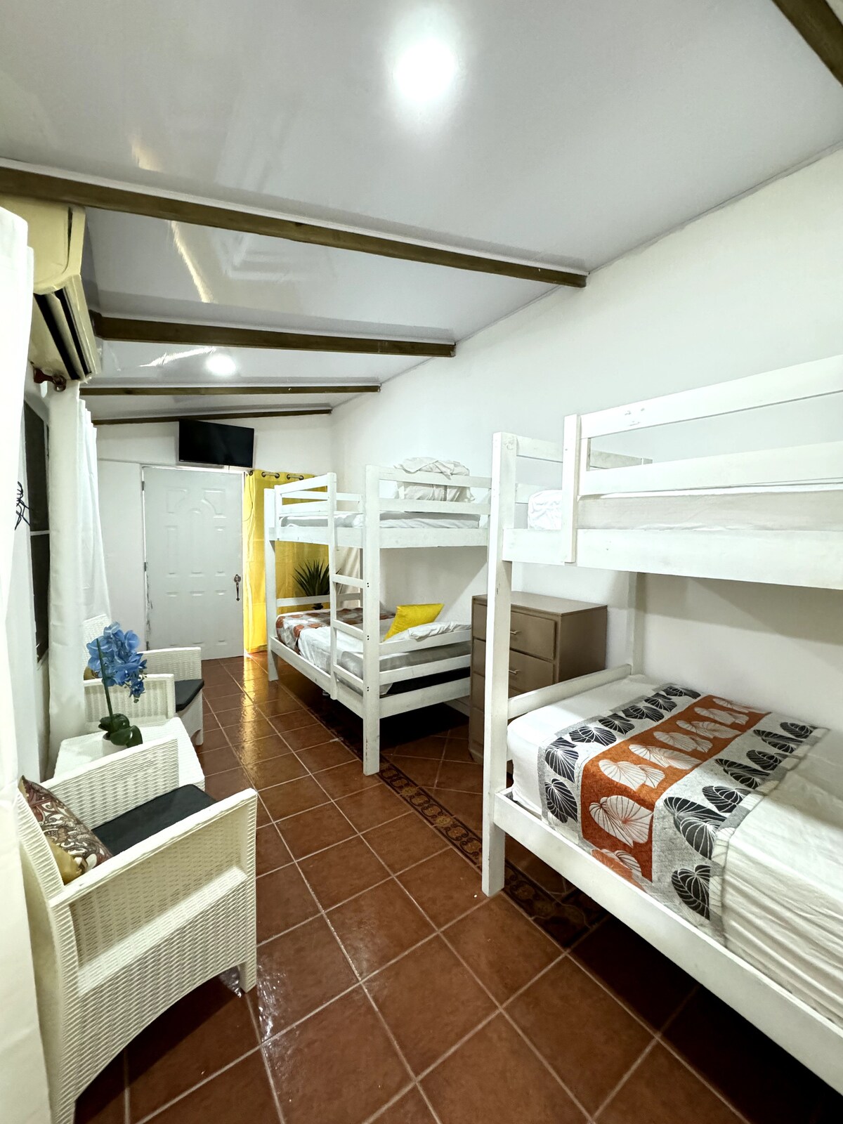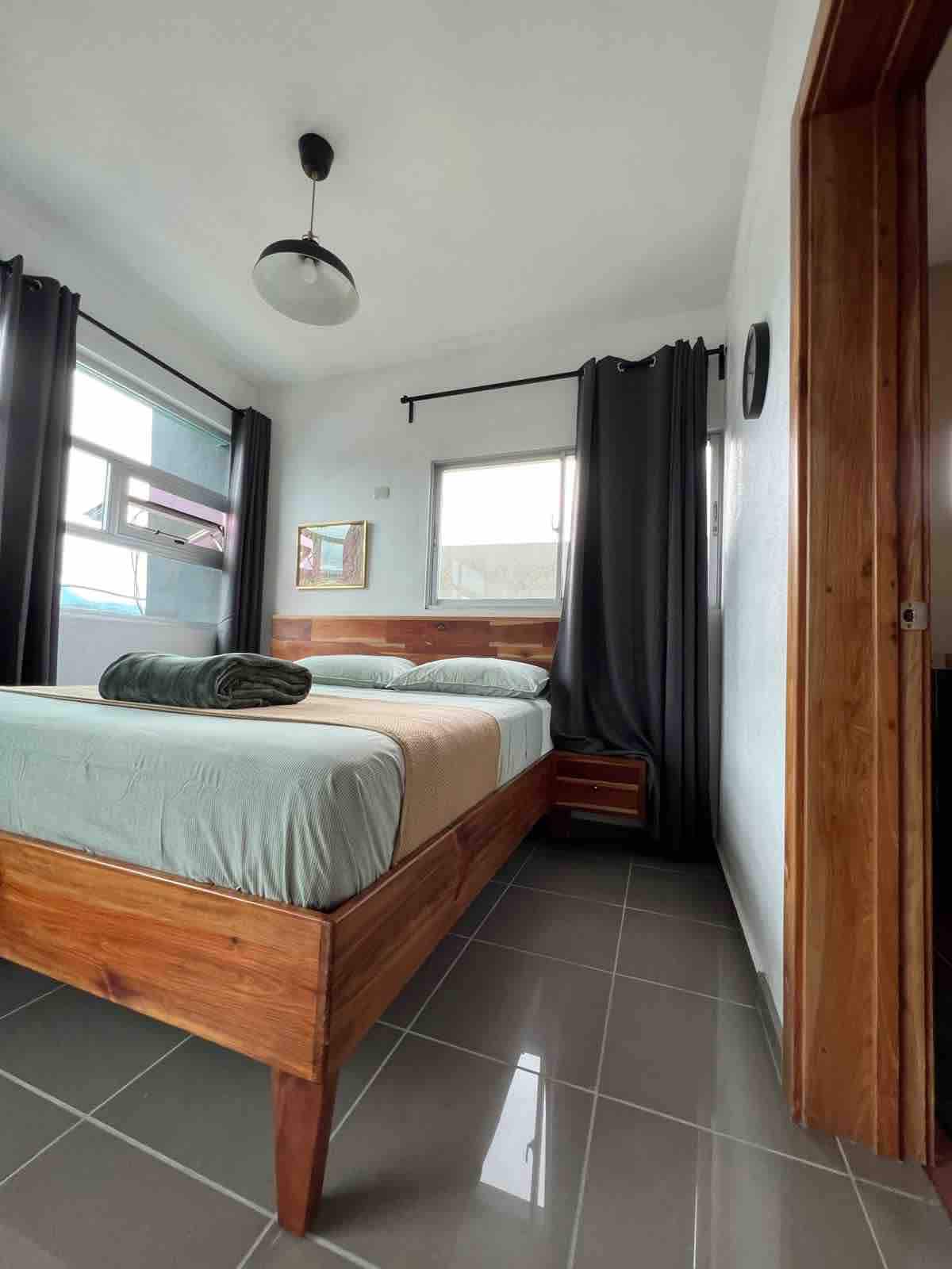 Nueva y moderna habitación, ideal para 4 huéspedes, cuenta con 2 camas queen, ropa de cama de alta calidad, estación de trabajo, baño privado y ventanales con vistas a las montañas. Está equipada con lo necesario para un cómodo descanso, abanico de techo, frazada para las noches frías, black out para aquellos que les gusta descansar en total oscuridad. Sin dudas, estarás tan o más cómodo que en casa en tu Hostal53.