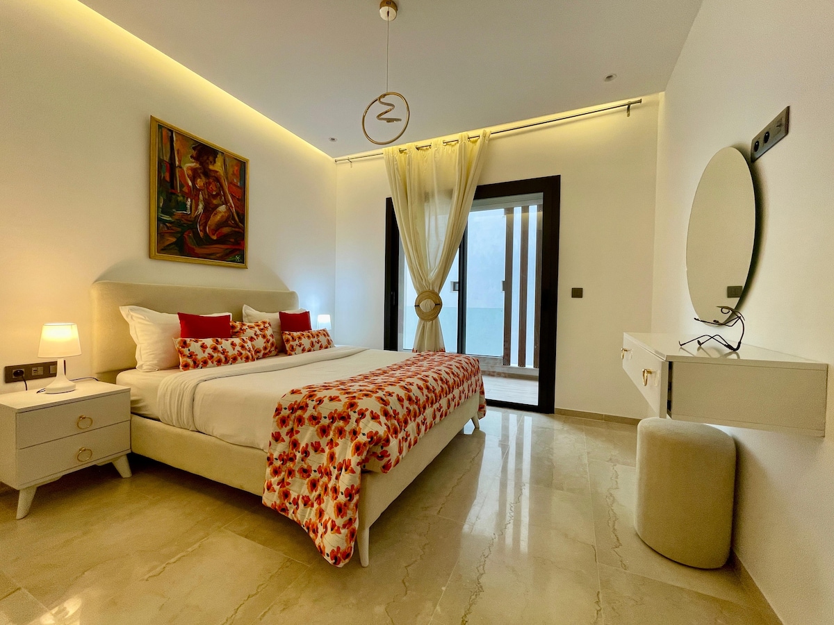 Idealmente situado en el corazón de los Jardines de Cartago, en una residencia de lujo, descubre mi apartamento Sky Nest, ricamente amueblado y conectado, compuesto por una cómoda sala de estar, un encantador comedor, un hermoso y acogedor dormitorio con cama doble, trastero, una cocina totalmente equipada y un baño con todo lo necesario. La residencia está bien equipada con una piscina en la azotea que ofrece unas vistas impresionantes y un espacio de fitness disponible también un bonito jardín bien protegido.