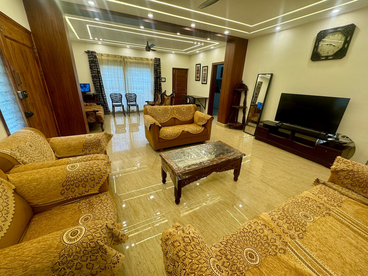 ¡Te damos la bienvenida a nuestro apartamento Lakeview! Experimenta la comodidad moderna en el entorno sereno de Bangalore. Relájate en nuestro acogedor apartamento de 2 dormitorios con aire acondicionado (en un dormitorio). Disfruta de una transmisión fluida con wifi de 100 Mbps. Disfruta de la comodidad de tener aparcamiento gratuito disponible dentro de las instalaciones, lo que hará que tus desplazamientos sean muy sencillos. Disfruta de té y café de cortesía y descansa en colchones premium con sábanas de calidad. Se proporcionan champú y gel corporal para una estancia sin preocupaciones. ¡Disfruta de la comodidad y la conveniencia en su máximo esplendor!