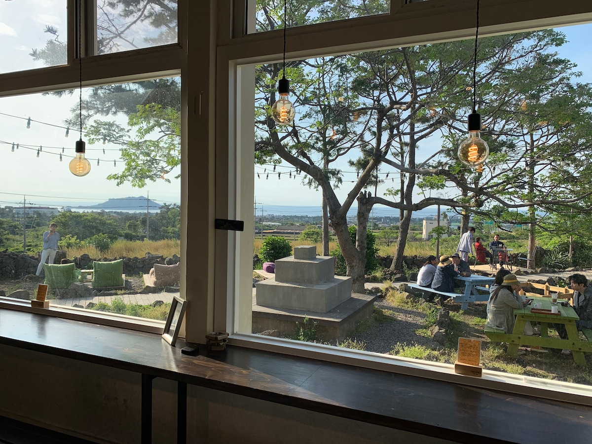 ★¡TE DAMOS LA BIENVENIDA A JEJU!★ POEMASTAY es un lugar rítmic que tiene un ambiente alegre durante el día y también tiene una noche tranquila para tu relajación. Los huéspedes pueden disfrutar de las vistas de la hermosa "BIYANGDO" (una isla volcánica) desde todas las terrazas ubicadas en POEMASTAY. POEMASTAY promete ofrecer alojamiento limpio y ordenado y servicios cálidos a su familia y a sus seres queridos.