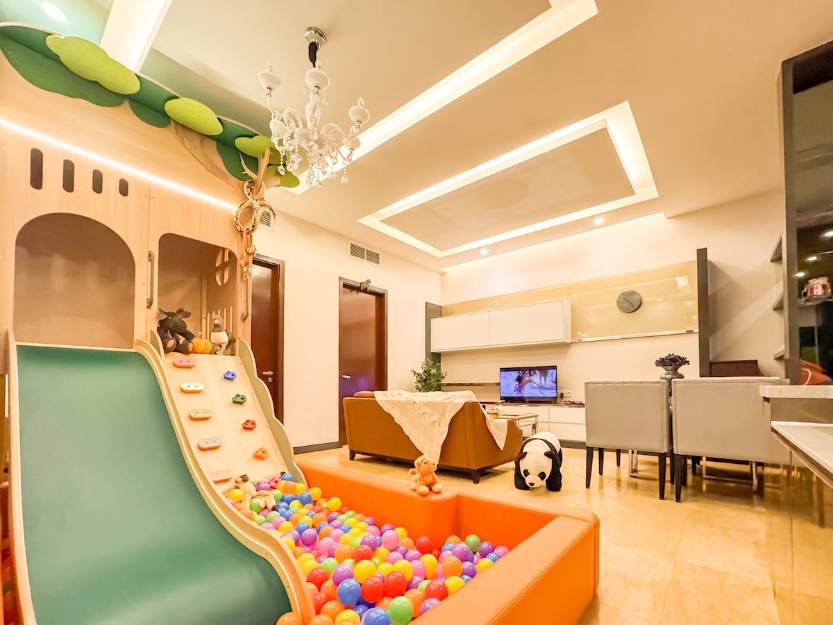 Wild Wild Wonderland, un alojamiento de estilo apartamento con temática de animales apto para niños, donde los niños aprenden sobre los animales, pasan por el tobogán hacia una piscina de bolas y juegan de forma independiente mientras los padres se sientan, se relajan y disfrutan de las vacaciones. Estamos ubicados en Bukit Bintang, Kuala Lumpur y cerca de más de 40 atracciones, a 5-10 minutos a pie de: Pabellón KL TRX The Puesto de Bolsas Horario cuadrito Paseo por Bintang Parada de autobús turístico Nuestro alojamiento se desinfecta después de cada estancia para la comodidad de tu familia.