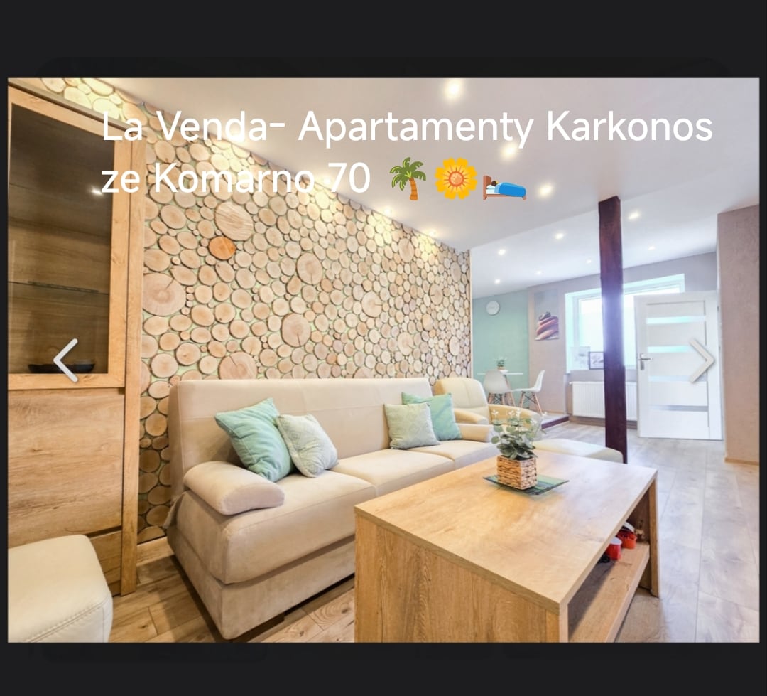 Un amplio apartamento de una habitación con cocina y un baño único está situado en la planta baja de una casa histórica de 300 años con historia. Desde las ventanas se puede ver las vistas de las Montañas Gigantes y el jardín. El departamento está bien equipado y es acogedor. La habitación tiene una chimenea recreativa: una cabra antigua alemana.