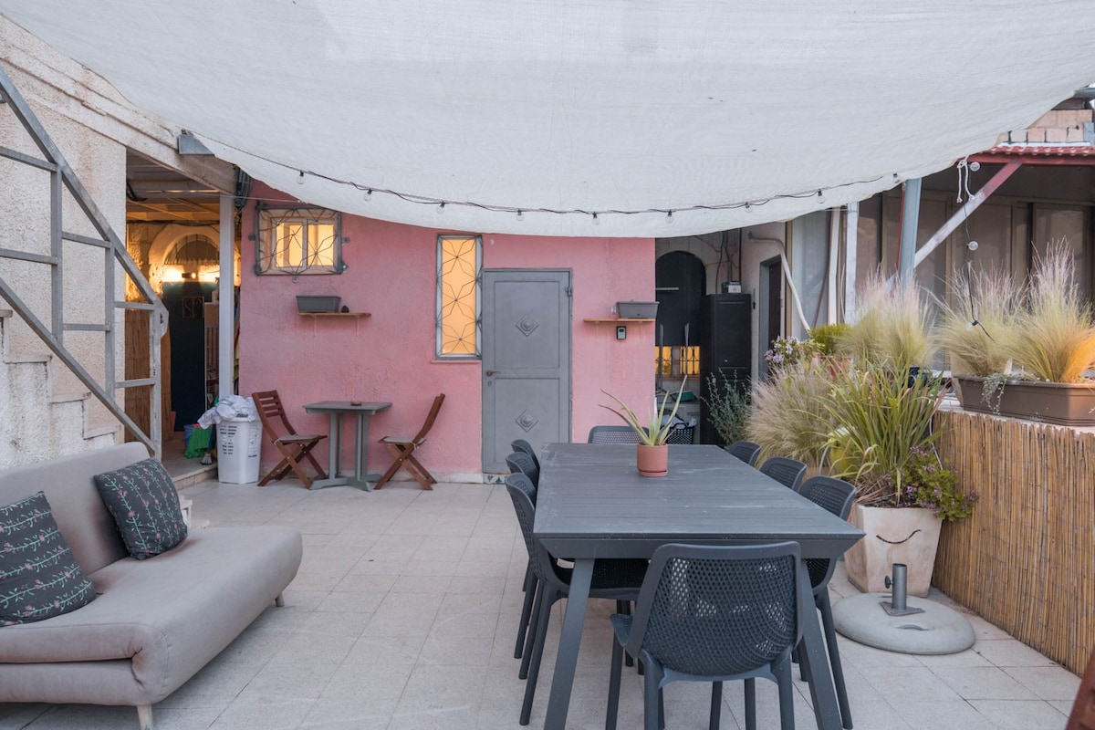 Un estudio muy solicitado en el corazón de Jerusalén, en el sexto piso con ascensor, justo enfrente del mercado Mahane Yehuda. Inteligentemente dividido en dos espacios, cuenta con una acogedora sala de estar, una cocina totalmente equipada con un comedor y una cómoda cama doble. Diseñado cuidadosamente, equilibra el estilo y el funcionamiento a la perfección. Disfruta del animado ambiente, del fácil acceso al transporte público y de todas las principales atracciones de la ciudad a pocos pasos de tu puerta. ¡Perfecto para una estancia inmemorable en Jerusalén!