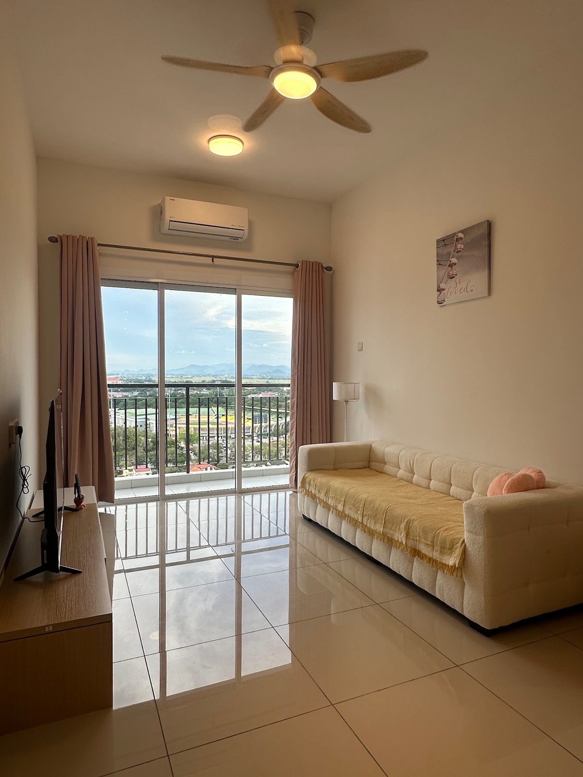 Apartamento familiar con vistas a la ciudad de Alor Setar y Menara Alor Setar Alójate en nuestro espacioso apartamento de 3 dormitorios, perfecto para familias o grupos pequeños. Tiene capacidad para un máximo de 6 huéspedes con 2 camas tamaño queen y una cama individual extraíble. Disfruta de unas impresionantes vistas a la ciudad y al Menara Alor Setar desde el balcón. A solo 5 minutos en coche de Aman Central, nuestro apartamento ofrece la combinación perfecta de comodidad y conveniencia para una escapada relajante.