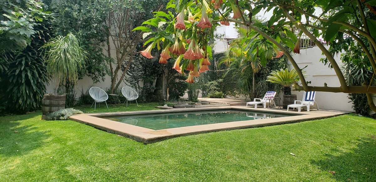 Increíble casa en una de las mejores zonas de Cuernavaca. En esta casa se respira la tranquilidad. No hay ningún ruido del exterior, más que los de la naturaleza. Cuenta con un hermoso jardín y una amplia área de piscina con camastros. La casa está completamente equipada con aire acondicionado, wifi, televisión, netflix, etc. Es el lugar ideal para relajarte!! Dentro de la propiedad hay otra casa, sin embargo son completamente independientes y se respeta la privacidad de cada una.