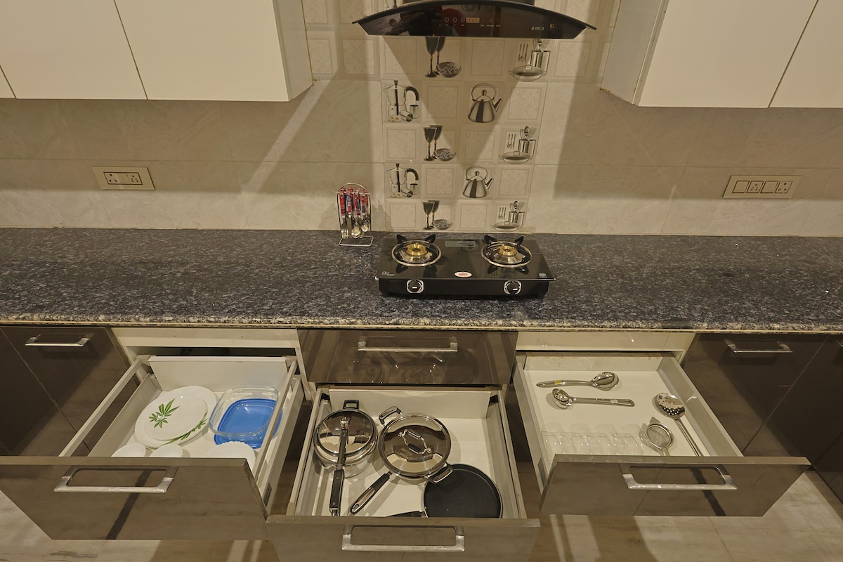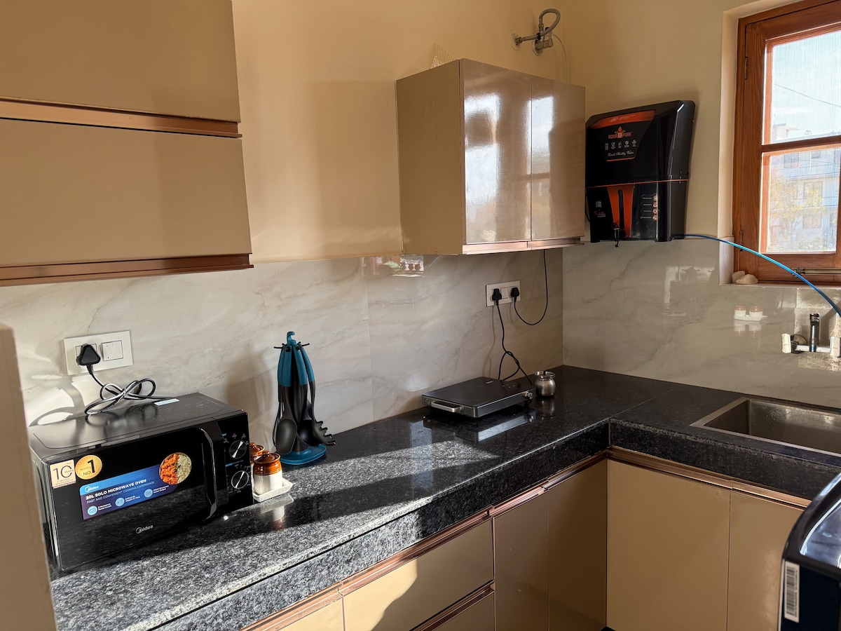 A 7 min del aeropuerto de Chandigarh ~ Amplio apartamento de 3 dormitorios con cocina